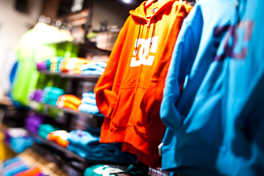 Марка DC предназначена для молодых любителей активного и экстремального отдыха. В магазине каждая мелкая деталь говорит о скейтбординге, пол залит покрытием для катания на скейте, а одежда разложена на скейтовых фигурах. Именно здесь представлен самый широкий выбор одежды и обуви DC в России.