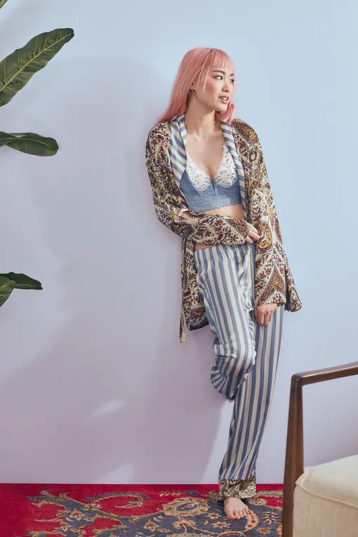 В коллекции чувствуется сильное влияние вновь вошедшего в тренд стиля вестерн. Почерпнув вдохновение в эстетике Дикого Запада, дизайнеры Intimissimi украсили кружевные комплекты белья и домашнюю одежду цветочными принтами, узором «пейсли» и аппликациями в форме звезд и роз.