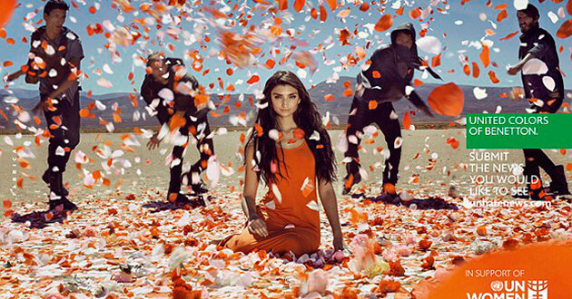 Итальянский бренд Benetton представил рекламную кампанию, приуроченную к Международному дню борьбы за ликвидацию насилия в отношении женщин (25 ноября). Съемки были организованы маркой совместно с одним из подразделений ООН, которое занимается этими вопросами. На модели не случайно надето оранжевое платье — оранжевый является официальным цветом Дня.
