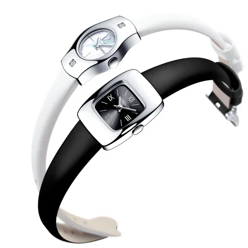 Все модели выполнены из серебра с гипоаллергенным родиевым покрытием с использованием швейцарского кварцевого механизма отменного качества. Ремешки сделаны из натуральной телячьей кожи с различными фактурами.