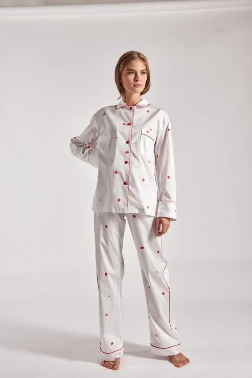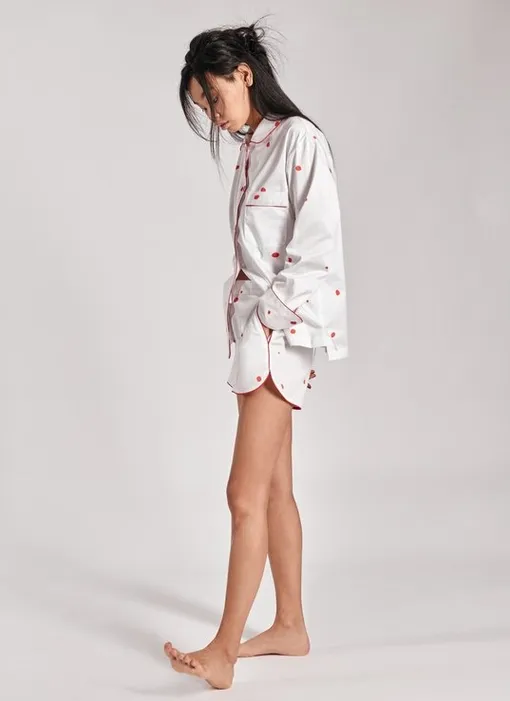 В капсулу вошли женские хлопковые пижамы классического кроя: красная в белый горох, а также белая в красный. Пижамы идеально подойдут в качестве подарка или наряда для романтического домашнего праздника со второй половинкой. Уникальным и памятным подарок помогут сделать монограммы ручной работы, которые можно заказать на сайте бренда.