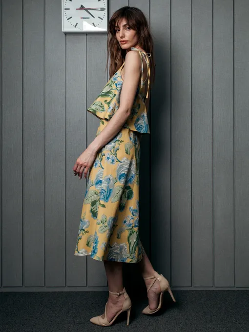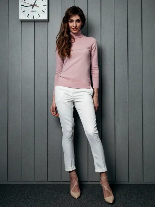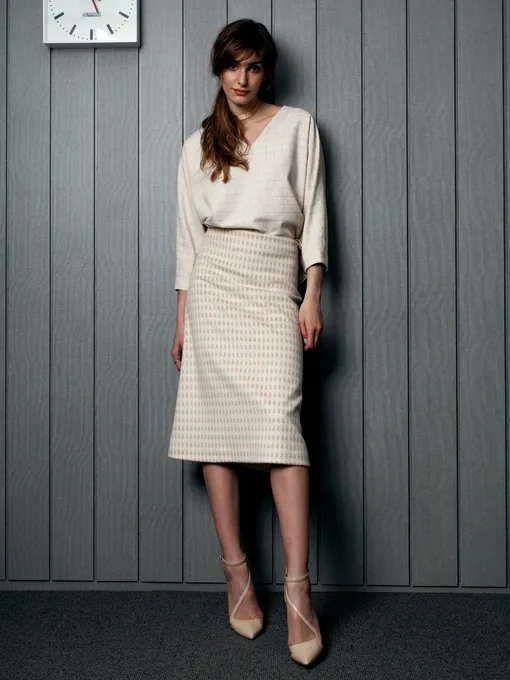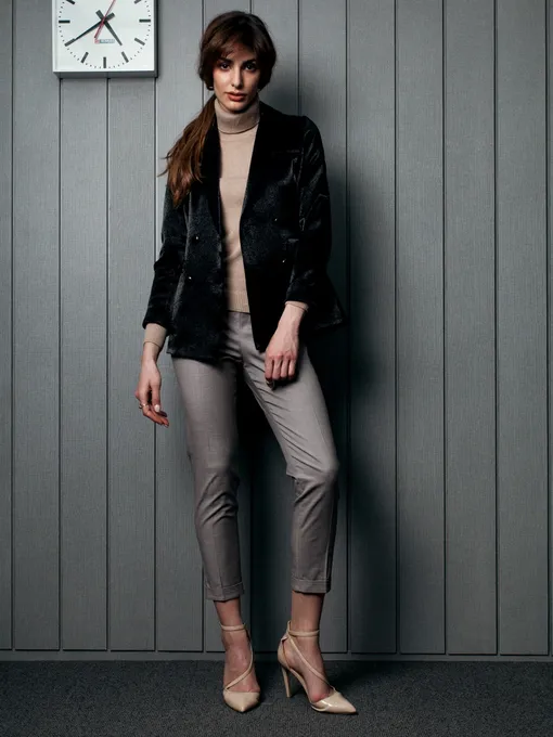 Основу коллекции составляют юбки, блузы из шелка и вискозы, базовые топы и водолазки из кашемира и шерсти, брючные костюмы, платья и пальто.