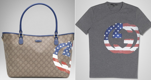Креативный директор Gucci Фрида Джаннини разработала линию футболок и аксессуаров с логотипом бренда, украшенных флагами Великобритании, Германии, Италии и России. Кроме классических серых футболок в коллекцию вошли кошелек и две сумочки разных размеров.