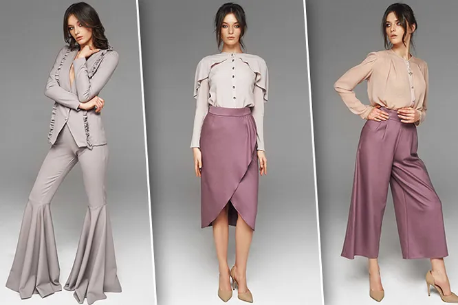 Оттенки коллекции максимально лаконичны и сдержанны: нюд, французский серый и лиловый. Акцент сделан на необычном крое. Классика в прочтении Smyr Madina выглядит эффектно и идеально подойдет как для деловых встреч, так и для выхода в свет.