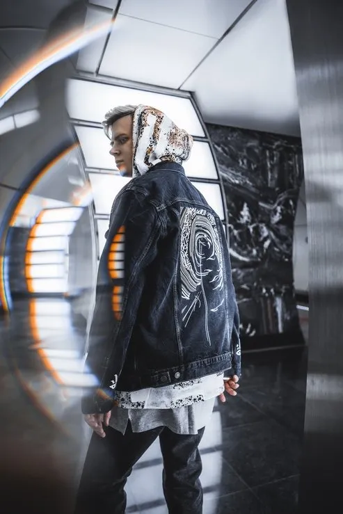 В результате сотрудничества появилась версия куртки Trucker для мужчин и женщин с композицией «Круг» на спине, дополненной каллиграфией в авторском стиле.