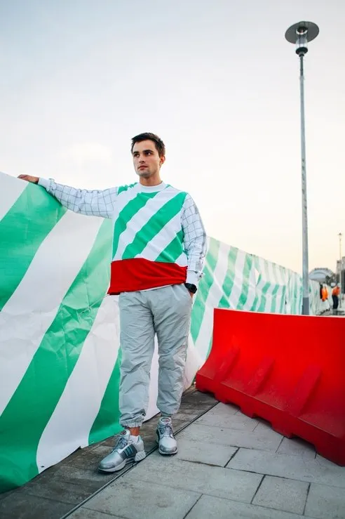 Основными цветами толстовок стали знакомые всем оттенки заграждений, установленных в городе на время реконструкции: салатовый, белый и красный. Рукава выделены геометрическим серебристым паттерном.