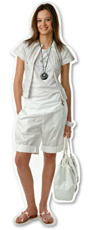 Ирина ЧернякПрежде всего эта вещь ассоциируется со спортом, за счет отстрочки тесьмой и типичных для бомбера линий. Поэтому она легко комбинируется с футболками, шортами, капюшонами, трикотажными брюками и всем, что с этим стилем связано. По цвету у тебя не будет никаких ограничений. Белый сделает приятным для глаза любой комплект. Но это очень необычная вещь. В крое, в отделке, в расположении карманов. У нее много стилей в подтексте, поэтому можно не ограничиваться только спортом. 1. Жакет, Moncler, 125 000 руб. 2. Украшение, Lady Collection, 340 руб. 3. Майка, Hache, 6310 руб. 4. Шорты, Hussein Chalayan, 7340 руб. 5. Сумка, Moschino Cheap & Chic, 42 542 руб. 6. Шлепанцы, Emilio Pucci, 18 980 руб. . |  |