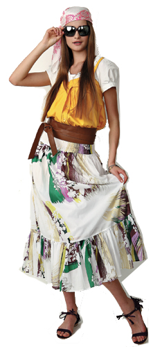 С однотонными вещами легко и интересно экспериментировать: сарафан превращается в топ, если его надеть под широкую юбку с крупным цветочным рисунком. Чтобы избежать бесформенности и мешковатого силуэта, подчеркни талию широким поясом. Можно еще больше усложнить задачу. Под сарафан надень блузу-«крестьянку» или майку с глубоким круглым вырезом, открывающим плечи. В зависимости от выбранного стиля продумай аксессуары.
