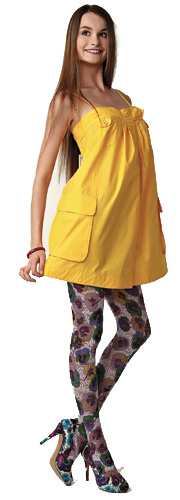 Не обязательно дожидаться жарких дней, чтобы начать носить летние платья и сарафаны. Отличное и очень модное решение – надевать их с колготками. Забегая вперед, скажу, что такие – в крупные яркие цветы – будут в моде не один сезон и ты сможешь стать еще и первооткрывательницей тренда. Высший пилотаж – подобрать туфли с повторяющимся рисунком. Но подойдут и любые яркие. Также будут удачно смотреться легкие сапоги на высоком каблуке с широким голенищем.