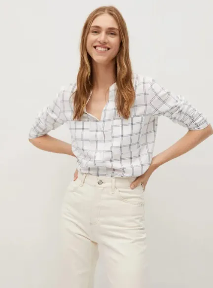 Не можем назвать Викторию поклонницей принтов, однако парочку ее любимых узоров мы все-таки обнаружили. Один из них – крупная минималистичная клетка (или windowpane). Блуза с таким принтом идеально впишется как в расслабленный повседневный лук с джинсами и кроссовками, так и в деловой ансамбль с классическими брюками, лодочками и приталенным жакетом.