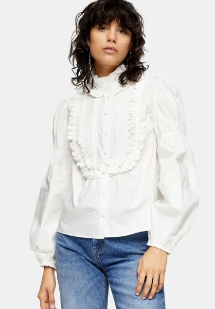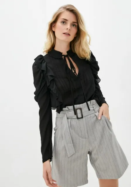 Самый романтичный тренд этого сезона – рюши, оборки и воланы. Виктория Бекхэм предпочитает сочетать блузы с подобным декором с чем-то более сдержанным и строгим, например с юбкой-карандашом, расклешенными брюками со стрелками или элегантными двойками. Мы советуем этим не ограничиваться и сочетать блузы с драматичными оборками и воланами с джинсами, кожаными мини-юбками или шортами.