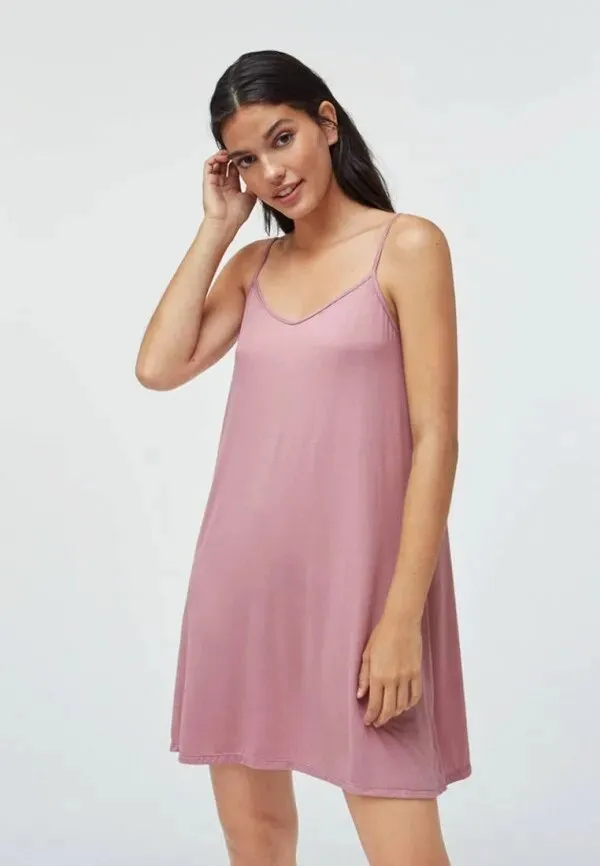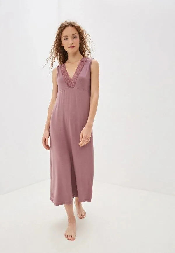 Мягкая ночная сорочка из трикотажа нежного пыльно-розового оттенка хорошо смотрится на любой девушке. Благодаря удобному сплошному силуэту и тонким бретелькам ты сможешь в ней спать хоть круглые сутки.
