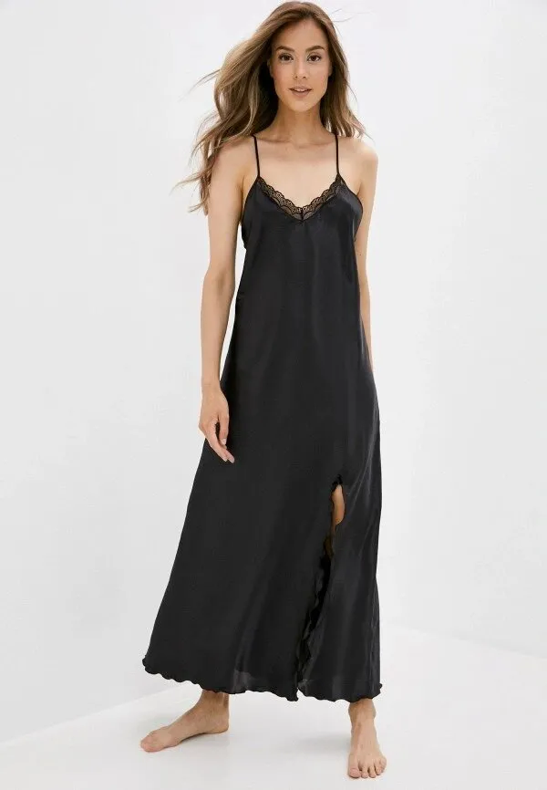 Длинная элегантная сорочка из синтетического материала не доставит дискомфорт и не перетянет во время сна. Особенно эффектно ночное платье макси-длины смотрится на высоких девушках.