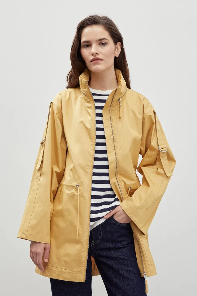 Время между ранней и «средней» осенью никак не называется — а оно есть. Это как раз тот период, когда в теплом пиджаке и тонком плаще уже холодно, а в полноценной куртке еще жарко. Плюс, дожди и прохладный ветер. В общем, это те самые раздражающие несколько недель, когда вообще не понятно, что надеть.