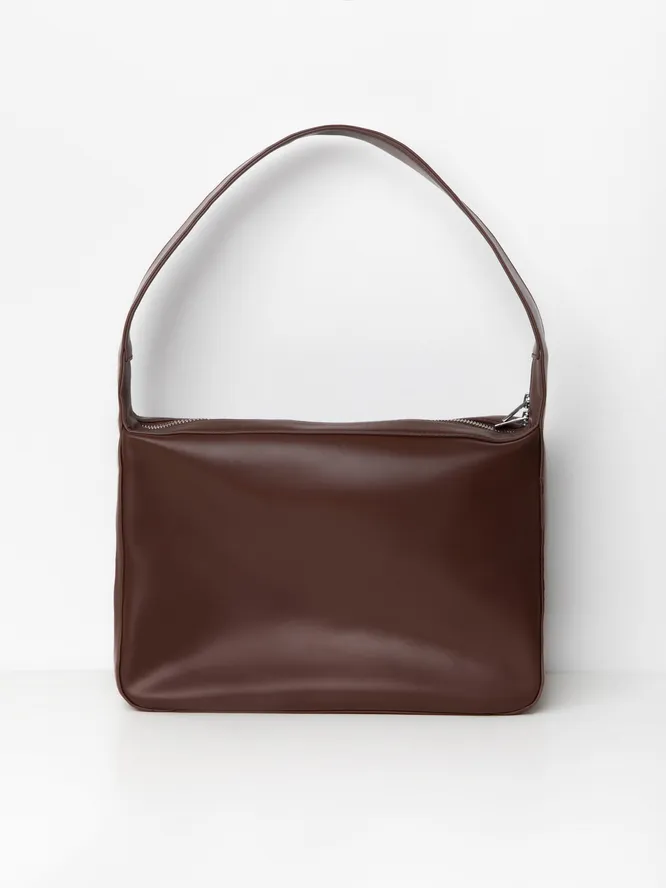 А еще можно сделать ставку на минимализм и примерить тоуты из мягкой кожи — без лишнего декора. Следи за тем, чтобы поверхность твоей обновки не слишком бликовала на свету: глянцевый эффект редко выглядит «дорого» на бюджетных материалах. А вот матовые фактуры сослужат хорошую службу — их, кстати, мы тоже отправили в подборку!