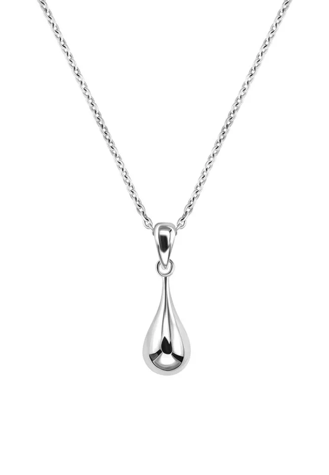 Это недорогое серебряное украшение понравится и поклонницам делового стиля, и сторонницам более расслабленных повседневных луков. Серебряный кулон с изящной, идеально отполированной вручную подвеской в форме капли подойдет и к строгому брючному костюму, и к базовой футболке с джинсами, и к романтичному платью с вырезом. Украшение подчеркнет изящные ключицы и визуально вытянет шею.