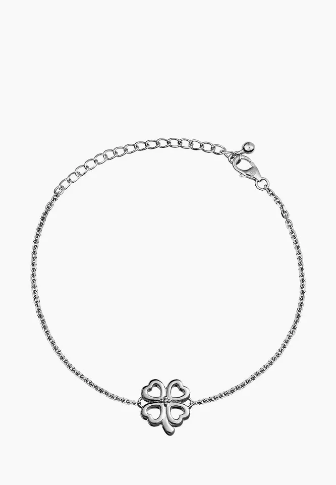Недорого купить серебряное украшение можно у бренда Wanna? Be! Нашим бесспорным фаворитом стал браслет из серебра 925-й пробы с родиевым покрытием и декоративной вставкой в виде четырехлистного клевера (на удачу!). Это абсолютно нейтральное украшение, которые красиво смотрится и с коктейльным платьем, и с классической рубашкой, и с уютным свитшотом оверсайз. Можно дополнить его тонкой цепочкой или широким серебристым браслетом и минималистичным кольцом.