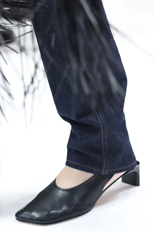 Кожаные минималистичные туфли, конечно, вне конкуренции. Это основа основ, пара, на которую всегда (вообще без преувеличений) можно положиться. Но кто запрещает выбрать кое-что чуть более интересное? Например, туфли с тупым мысом, металлической фурнитурой или скошенным каблуком. Казалось бы, всего одна деталь, а смотрится эта обувь свежее, чем классика.