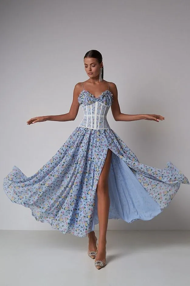 - сарафаны в стиле коттеджкор — мини и миди с растительным принтом или «в квадрат».
