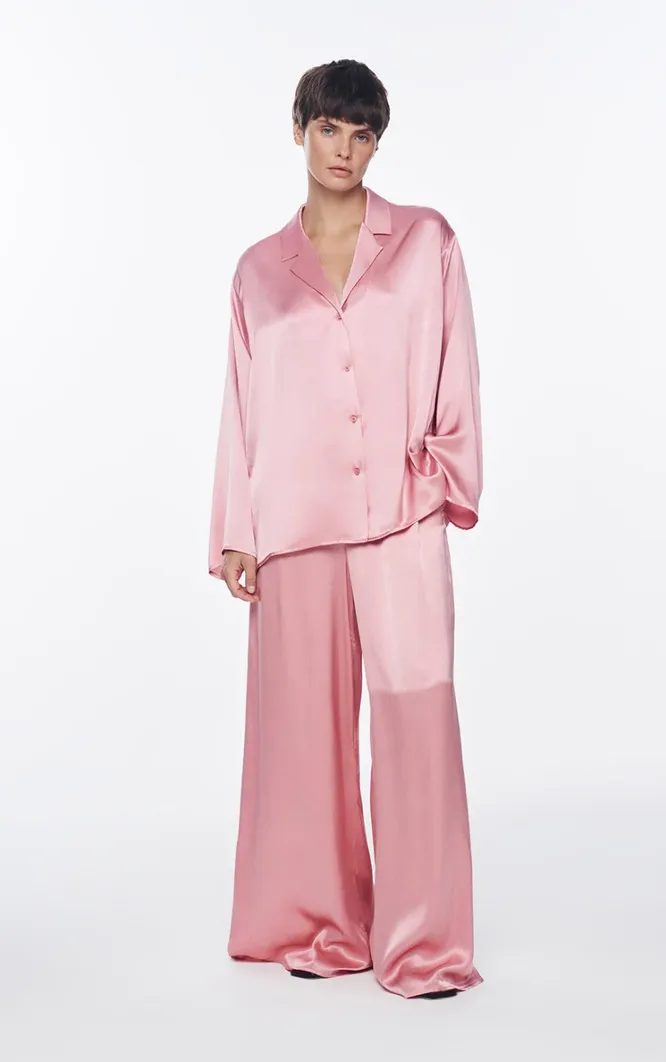 Пижамный костюм с сабо и, скажем, плетеным тоутом – классное сочетание для отпускных променадов по европейским улочкам. Тот же костюм, но уже с нарядными босоножками или мюлями (недавно, кстати, делали подборку) плюс клатч и украшения с крупными кристаллами – и ты готова к романтичному ужину.