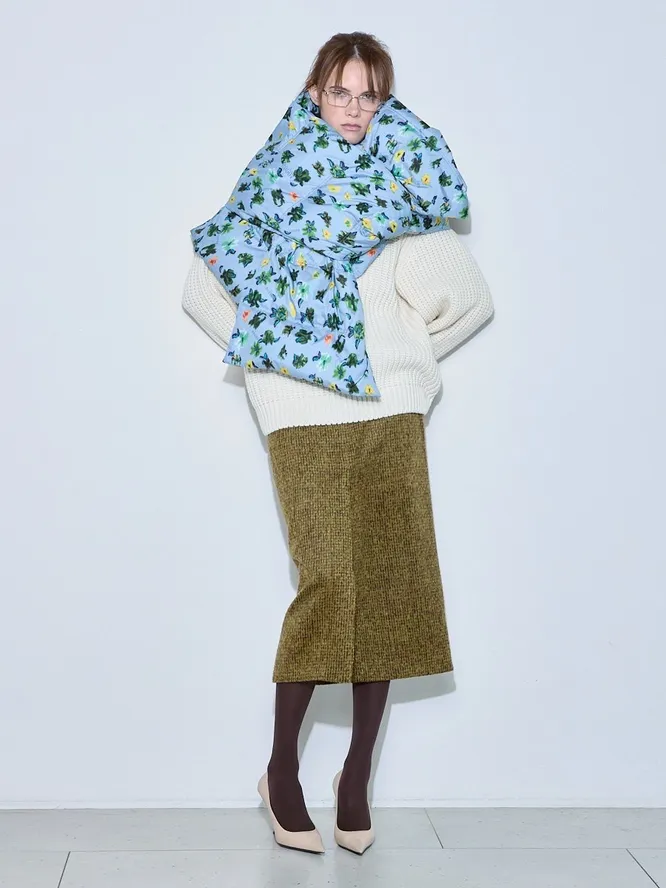 Посмотри на стритстайлы с Недель моды и аутфиты фэшн-блогеров: может, не в каждом первом, но в каждом втором look'е есть шарф. В сезоне 2025/2026 больших тенденции две: это либо широкий гладкий палантин ровно под цвет пальто / пуховика, либо яркий шарф-заявление. Обе фишки хороши и имеют право на жизнь в твоем гардеробе!