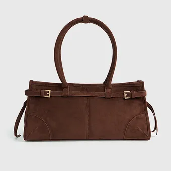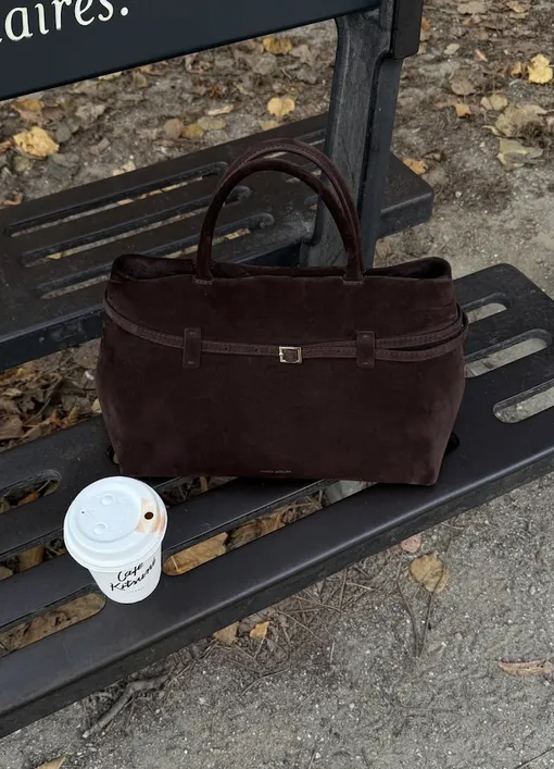 В рейтинге самых эффектных фактур на осень и зиму замша занимает почетное первое место. Сумка из этой мягкой кожи органично вписывается в любой теплый аутфит, потому что сама выглядит уютной. Да, под дождем и мокрым снегом не погуляешь, но в погожие деньки – красота!