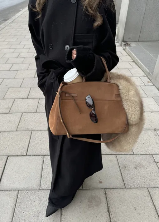 В этом сезоне особенно популярны объемные минималистичные сумки – в духе The Row. Они полюбились многим фэшэниста из-за лаконичного дизайна, который хорошо смотрится в любых деловых образах. Плюс, они не выглядят громоздко благодаря плавным и аккуратным линиям. Забираем в корзину, что уж тут говорить.