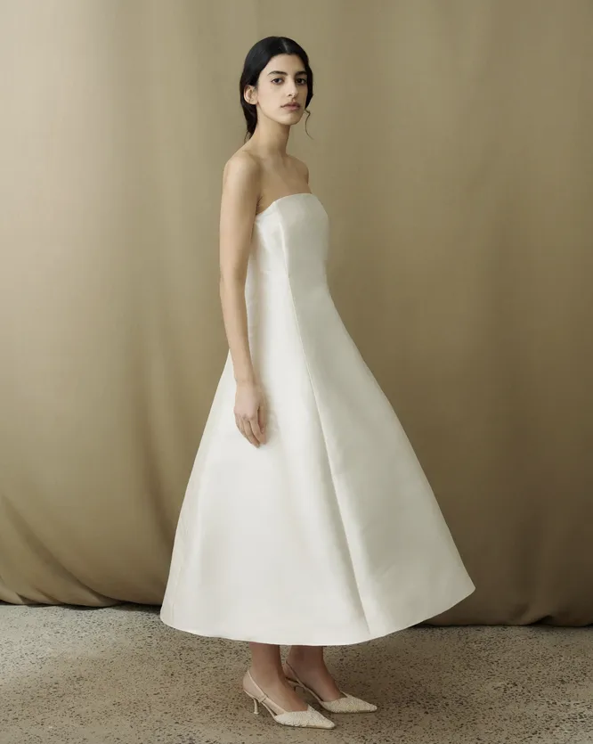 Eclata тоже опирается на визуальный минимализм, но с формой взаимодействует прекрасно. Хорошо то, что на двух-трех силуэтах бренд не ограничивается и предлагает самые разные модели платьев.