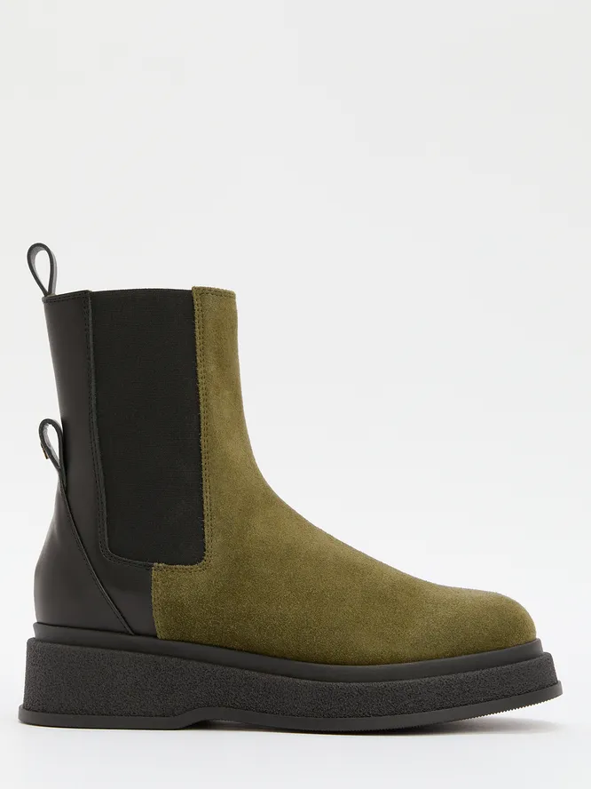 Здесь пятерка максимально нейтральных, но удобных челси. Конечно, в базовых оттенках: беж, темно-синий, вишневый, шоколадный. Черный вне конкуренции, но предлагаем все-таки чуть-чуть расширить понятие базы!