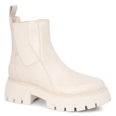 Еще одни «капризули» – светлые челси. Светлый беж и молочный оттенок – варианты маркие, да. Но именно поэтому дизайнеры создают светлые челси на высокой подошве или со специальной резиновой окантовкой, которая будет защищать мыс обуви от грязных пятен. Не быть стильной – нет вариантов!