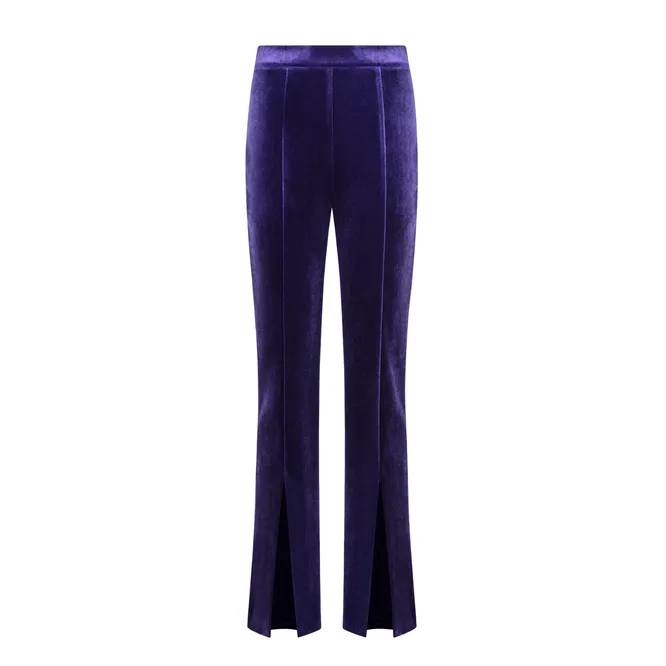 Наш самый большой фаворит этой подборки — роскошный, не побоимся такого эпитета, бархатный костюм насыщенного оттенка Veri Pery. Интегрировать его в образ не очень-то легко, но Институт цвета Pantone настойчиво рекомендует в сезоне 2022/2023 носить фиолетовый. Да и подиумные образы тонко намекают на то, что без сирени в этом году модную капсулу не составить. Так зачем обходиться минимумом? Повышаем ставки: надеваем и Veri Pery, и бархат. Необычно — а как эффектно!