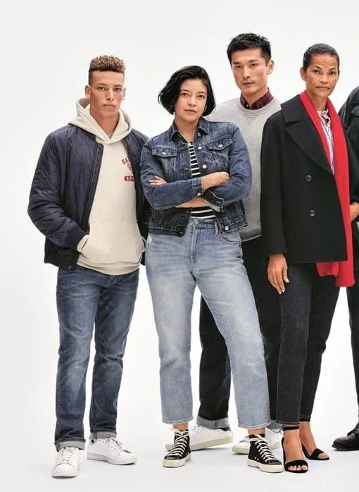 Смело сочетай разные цвета денима, например темно-синюю куртку и светло-голубые джинсы Gap Mom Jean. Модель с завышенной посадкой подчеркнет талию, визуально удлинит ноги и не растянется спустя время. А с задачей «разбавить» тотальный деним отлично справится футболка в полоску.