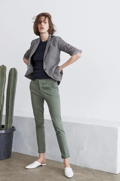Черная футболка, серый пиджак и брюки хаки легко могут стать основой твоего базового гардероба. Сочетая их между собой или надевая по отдельности, ты будешь выглядеть свежо и стильно.