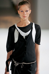 Воплотилась в сочетании пальто, рубашек и галстуков с симпатичными бантами.