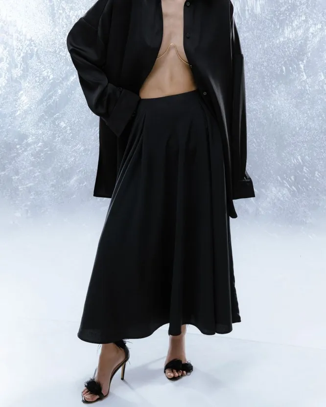 Не стоит недооценивать среднюю длину — она может казаться тебе консервативной и несуразной, но когда ты подберешь достойные лодочки или сапоги на каблуке, юбка заиграет по-новому.