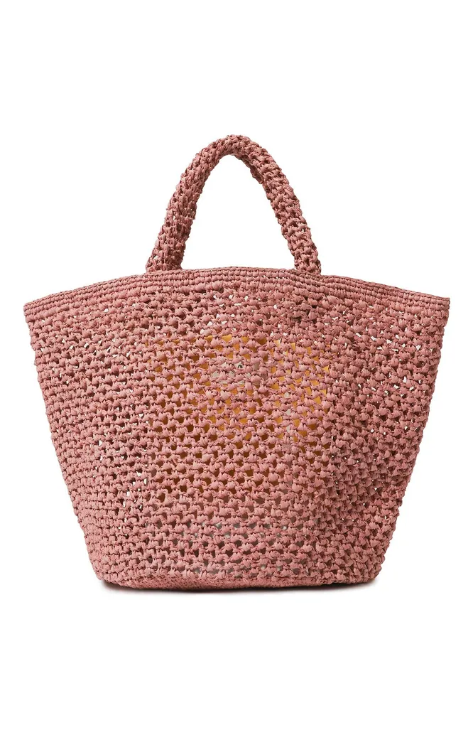 Мягкая плетеная сумка уж очень напоминает авоську — и это тренд. «Плетенки» хороши тем, что складываются и помещаются в городской тоут или кросс-боди, так что ты всегда сможешь забежать на пляж и бросить на песок не кожаный аксессуар, а вот такую вместительную сумку. Полотенце и купальник тоже поместятся!