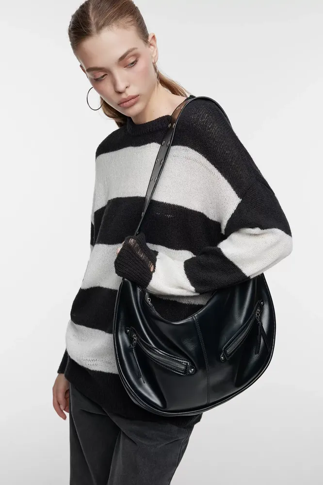 В начале 2023 сумки-полумесяцы поднялись на вершину трендов и очень органично влились в повседневный гардероб модниц. Эти «рогалики» прекрасно подходят девушкам, которые любят аксессуары с изюминкой — не как у всех.