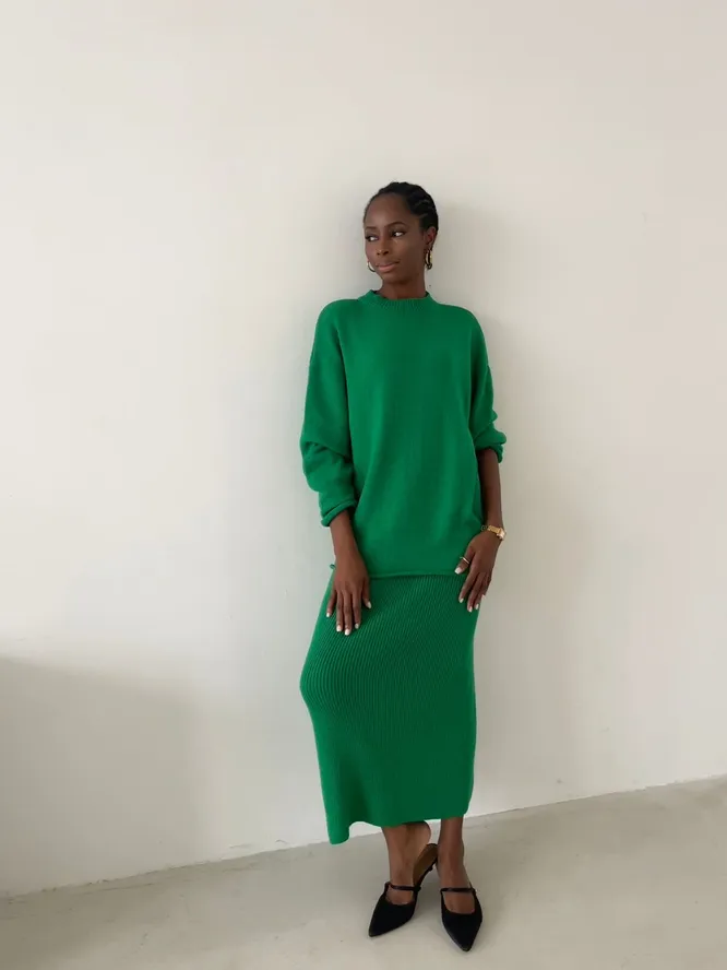 Поэтому в холодное время года нас выручают трикотажные комплекты, которые работают по принципу хамелеона. Добавишь к ним угги и мягкий широкий шарф — получишь суперуютное комбо на холода. Наденешь рубашку и миди-юбку с лоферами и носочками — вот и классный casual-look.