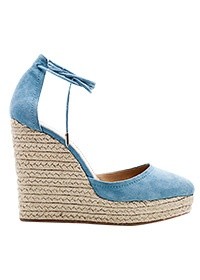 Цветные босоножки на танкетке – самая практичная покупка лета. Стильные и удобные, они хороши и к длинному сарафану, и к шортам из денима.