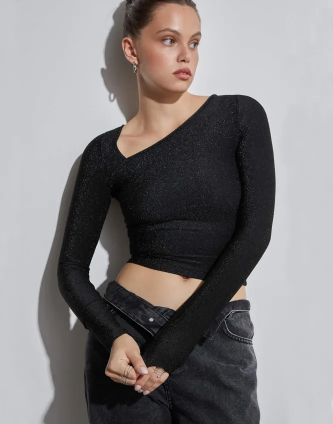 Если ты хочешь немного разнообразить свой базовый гардероб, но не знаешь, как, то начни обновления с однотонного темного лонгслива с неглубоким асимметричным вырезом. Такую вещь, конечно, можно легко интегрировать в повседневные образы — асимметричные линии добавят перчинку в привычные аутфиты.