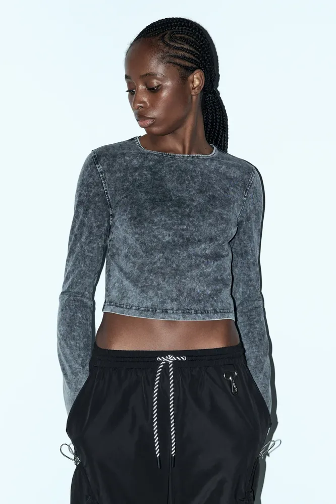 Джинсы, юбки из денима, а теперь трендовые лонгсливы из «вареной» ткани — последние несколько сезонов инфлюэнсеры часто выбирают этот ретро-эффект, и мы предлагаем тебе тоже попробовать интегрировать его в повседневные look'и.