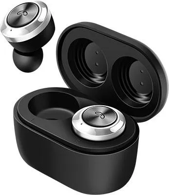 Эта компактная модель наушников предусматривает в комплекте целых 6 пар сменных силиконовых амбушюр, среди которых можно подобрать наиболее подходящую по размеру. Благодаря этому наушники не выскальзывают даже во время физической активности, плотно прилегают к ушной раковине. Кроме этого, они оборудованы системой активного шумоподавления, благодаря которой посторонние шумы не мешают прослушиванию аудиофайлов и не искажают голос во время телефонного разговора. Управление звонками и переключение треков осуществляется сенсорной кнопкой. В режиме музыки заряда наушников хватает на 8 часов непрерывной работы; предусмотрена возможность быстрой дозарядки.