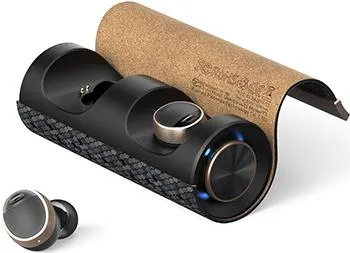 Оригинальный футляр этих наушников, выполненный в виде компактной овальной коробочки, имитирующей кожу, служит также переносной зарядной станцией для наушников. При полном заряде их работы хватает на 6 часов разговора или прослушивания аудиофайлов. Управление осуществляется с помощью сенсорной кнопки, которая дает возможность ответить на звонок, не доставая телефон из кармана, или включить воспроизведение музыки. Три пары анатомически выполненных, удобных амбушюр имеют разные размеры и позволяют выбрать наиболее подходящую для каждого конкретного человека. Они плотно прилегают к ушной раковине и наряду с функцией шумоподавления отсекают большинство посторонних звуков.