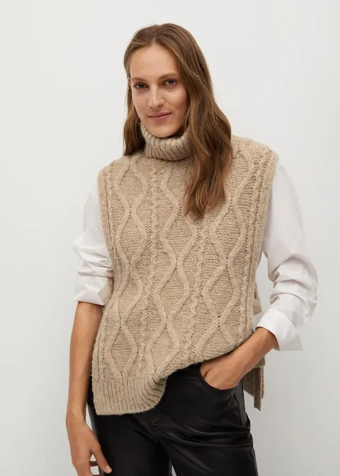 Безрукавка объемной вязки с воротником, Mango