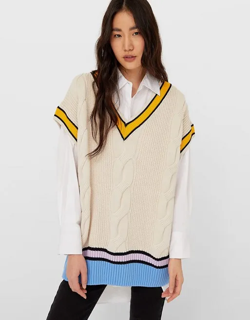 Вязаная безрукавка в косичку, Stradivarius