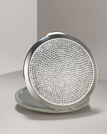 Начнем, пожалуй, с зеркала от Leiber. Этот аксессуар очень удобен и красив. Впечатляет его комфортный размер. Тем более, сейчас в моде объемные сумки, в которые прекрасно поместится это зеркальце.