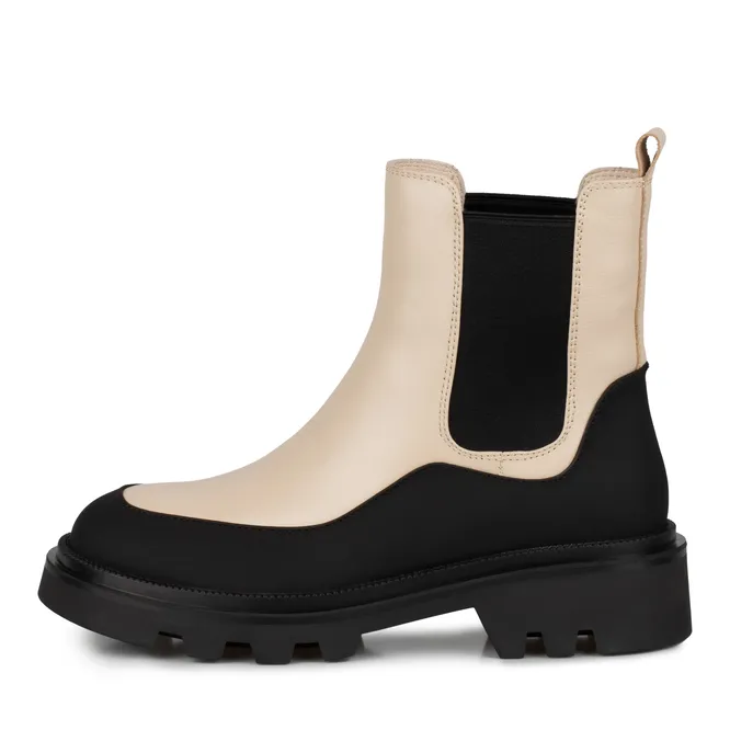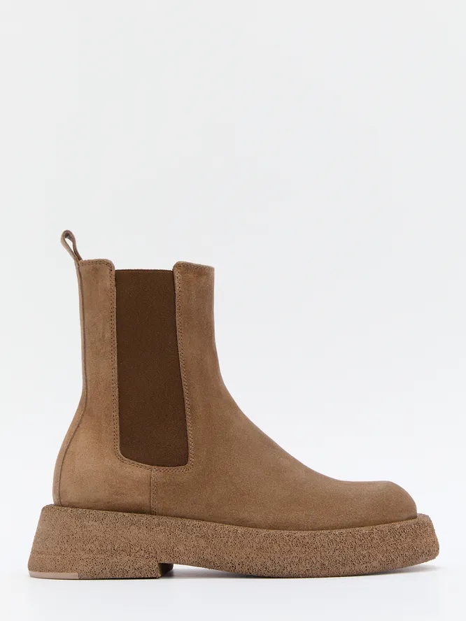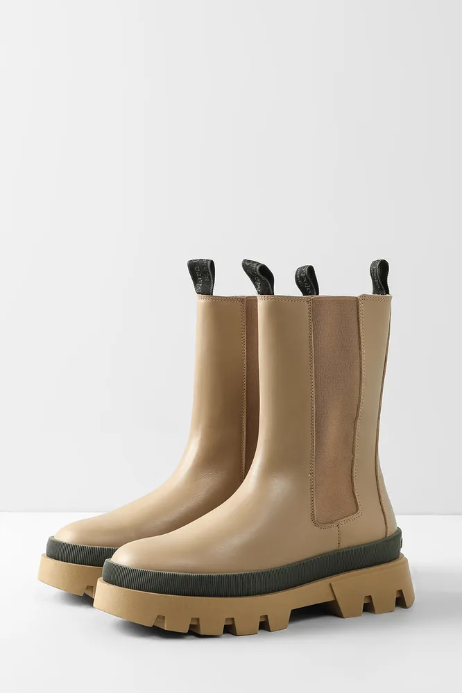 Отдельно «вирусятся» черные челси с яркой цветной подошвой, но можно присмотреться и вариантам поспокойнее. Например, бежевым моделям с контрастной черной подошвой: тут оба цвета максимально спокойные.