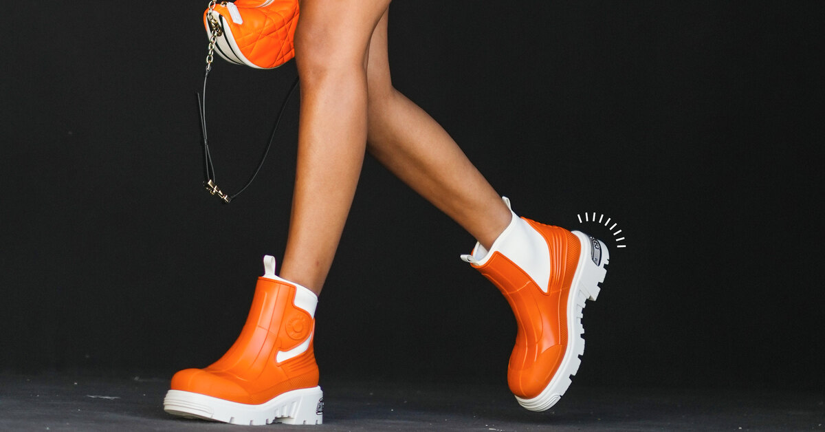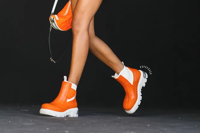 А еще тебе могут понравиться челси не из традиционных материалов вроде кожи или замши, а, скажем, из резины. И ты удивишься, но с брючным костюмом они подружатся так же просто, как базовые челси!