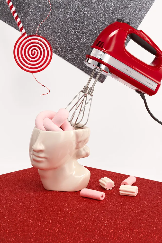 Набор для любителей сладкого — керамическая ваза, в которую можно положить печенье или другую любимую выпечку, красивые конфеты, ну и миксер, чтобы можно было приготовить любой десерт, когда только душа пожелает. И нет, не слипнется!