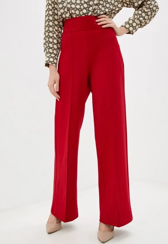 В деловом образе широкие алые брюки органично смотрятся в дуэте с кремовой шелковой блузой или рубашкой прямого кроя. В будни носи их с грубыми ботинками или массивными кроссовками и свитером оверсайз – стильный и комфортный комплект для повседневных дел. А чтобы стать звездой на светском мероприятии, добавь к этим брюкам блестящую блузку, лаковые лодочки на шпильке и бархатный клатч.